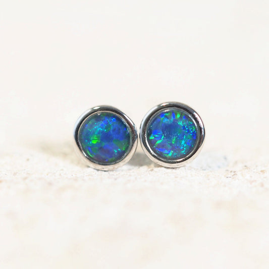 'Celia Blue Petite' Triplet Opal Earrings Gold Plated Silver