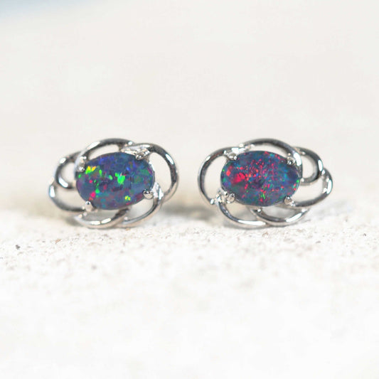 'Nouveau Blue' Triplet Opal Earrings Silver