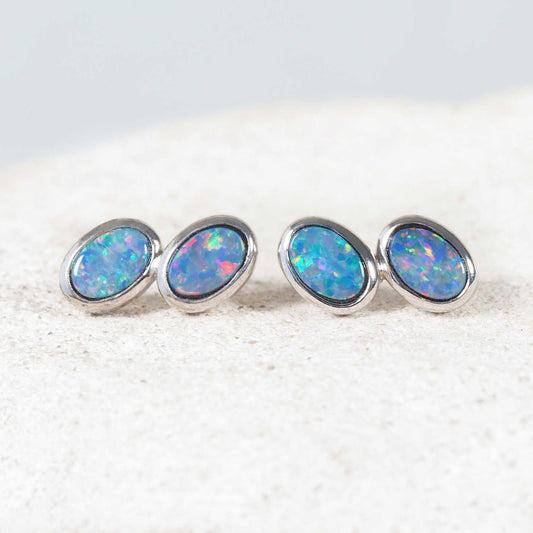 'Lena' Doublet Opal Earrings 14ct White Gold