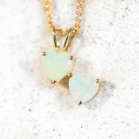 'Heart to Heart Deux' Crystal Opal Pendant 9ct Gold