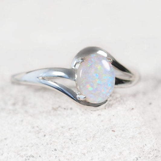 'Alina Petite Blue' Triplet Opal Ring Silver