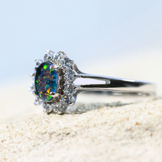 'Halo' Triplet Opal Ring Gold Plated Silver