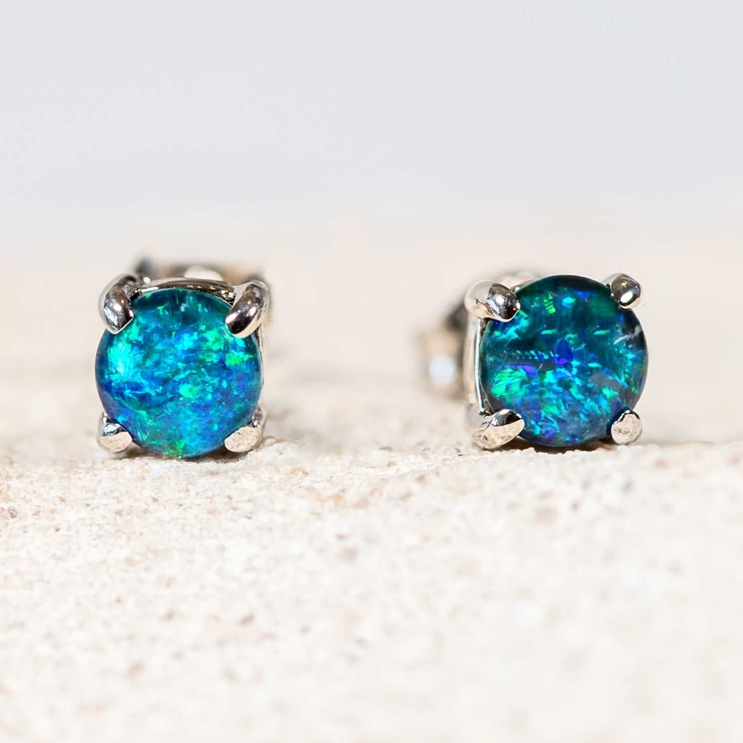 'Celia Petite' Triplet Opal Earrings Silver
