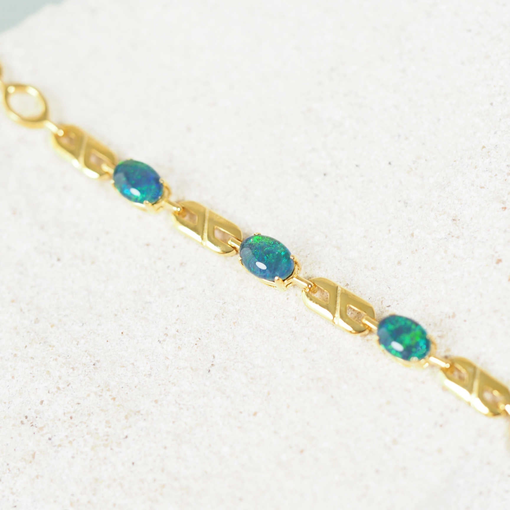 'Double Link Blue Trio' Triplet Opal Bracelet Gold Plated Silver Was this helpful? 0 0
