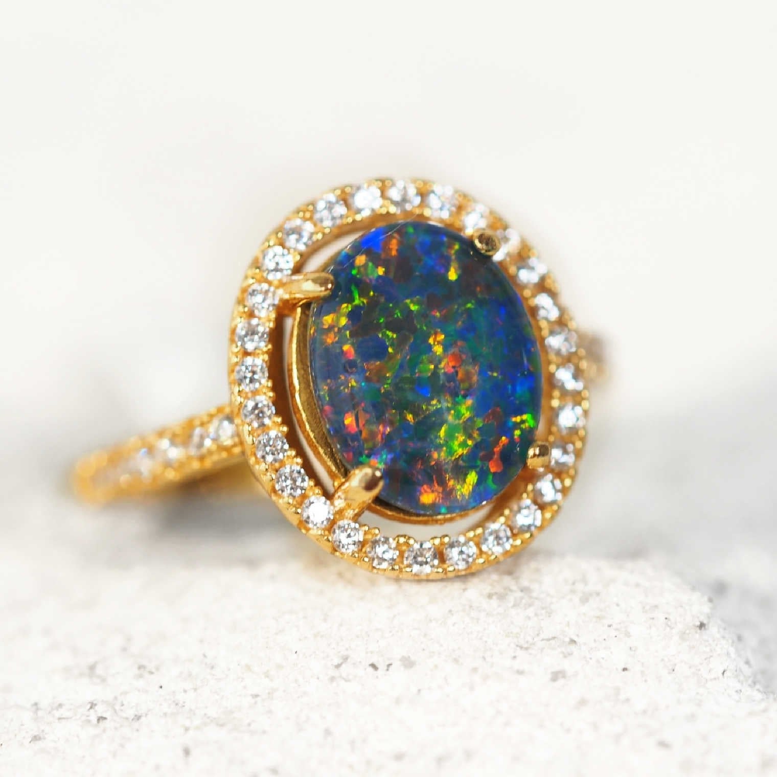 'Halo' Triplet Opal Ring Gold Plated Silver