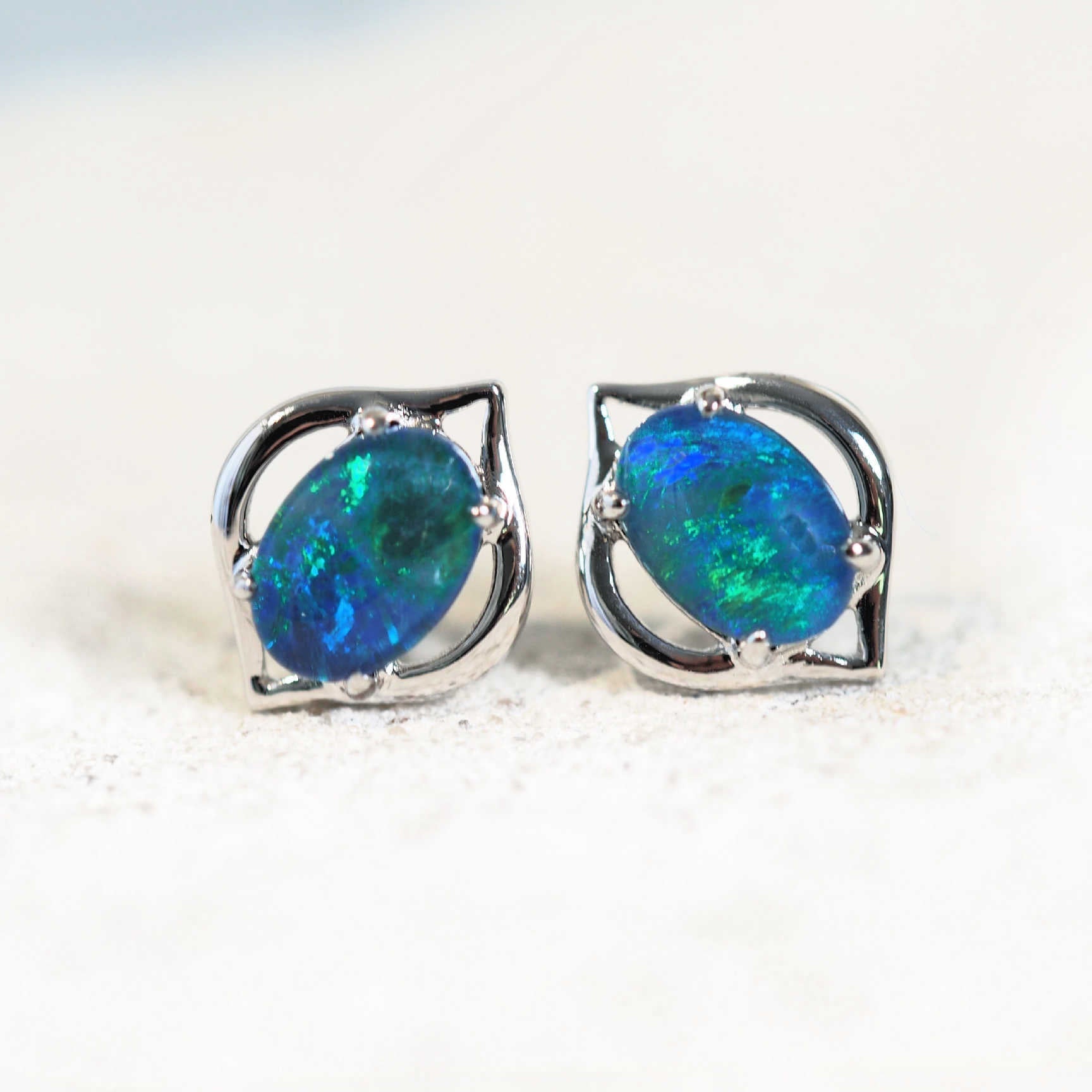 'Genie Blue' Triplet Opal Earrings Silver