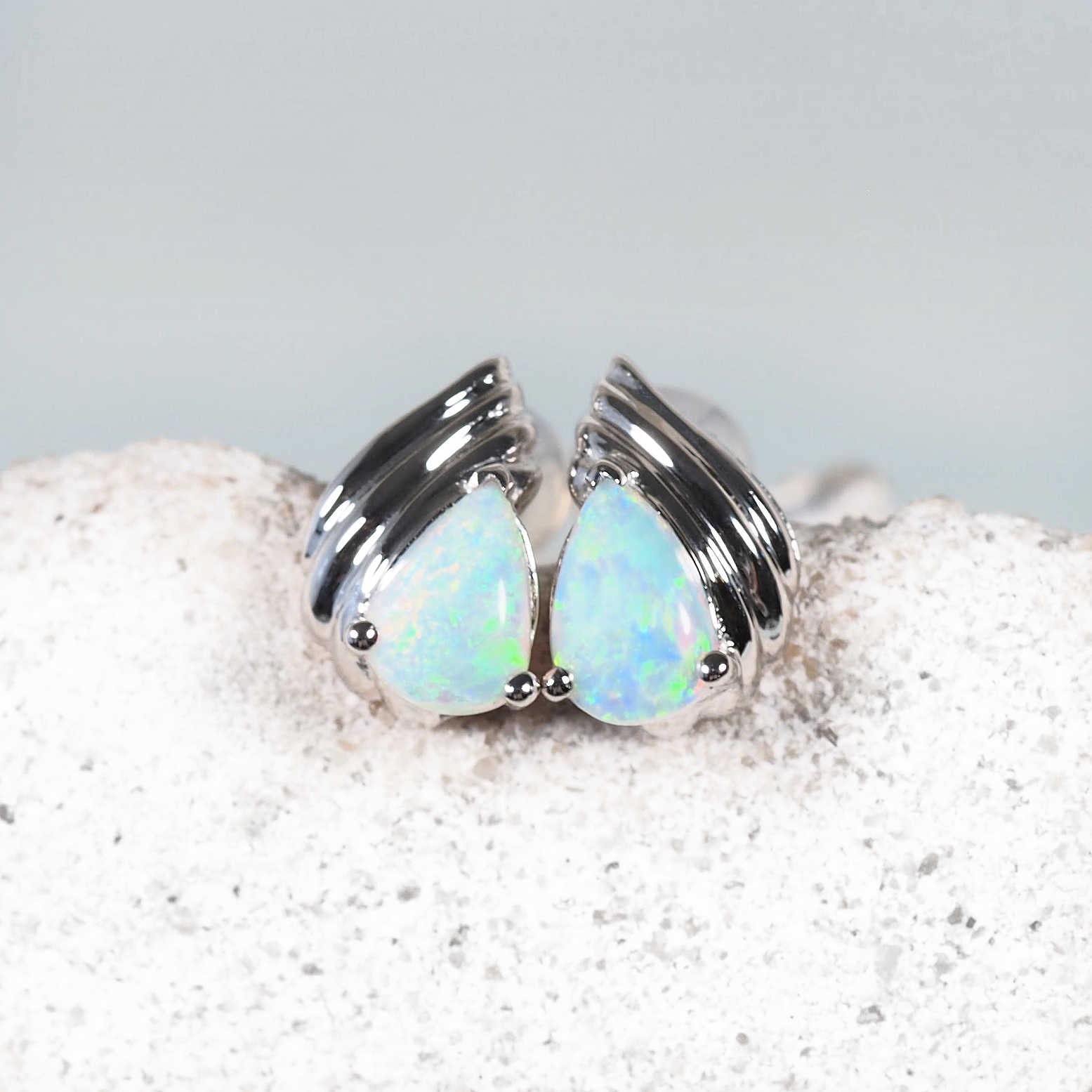 'Elena' Crystal Opal Earrings 14ct White Gold