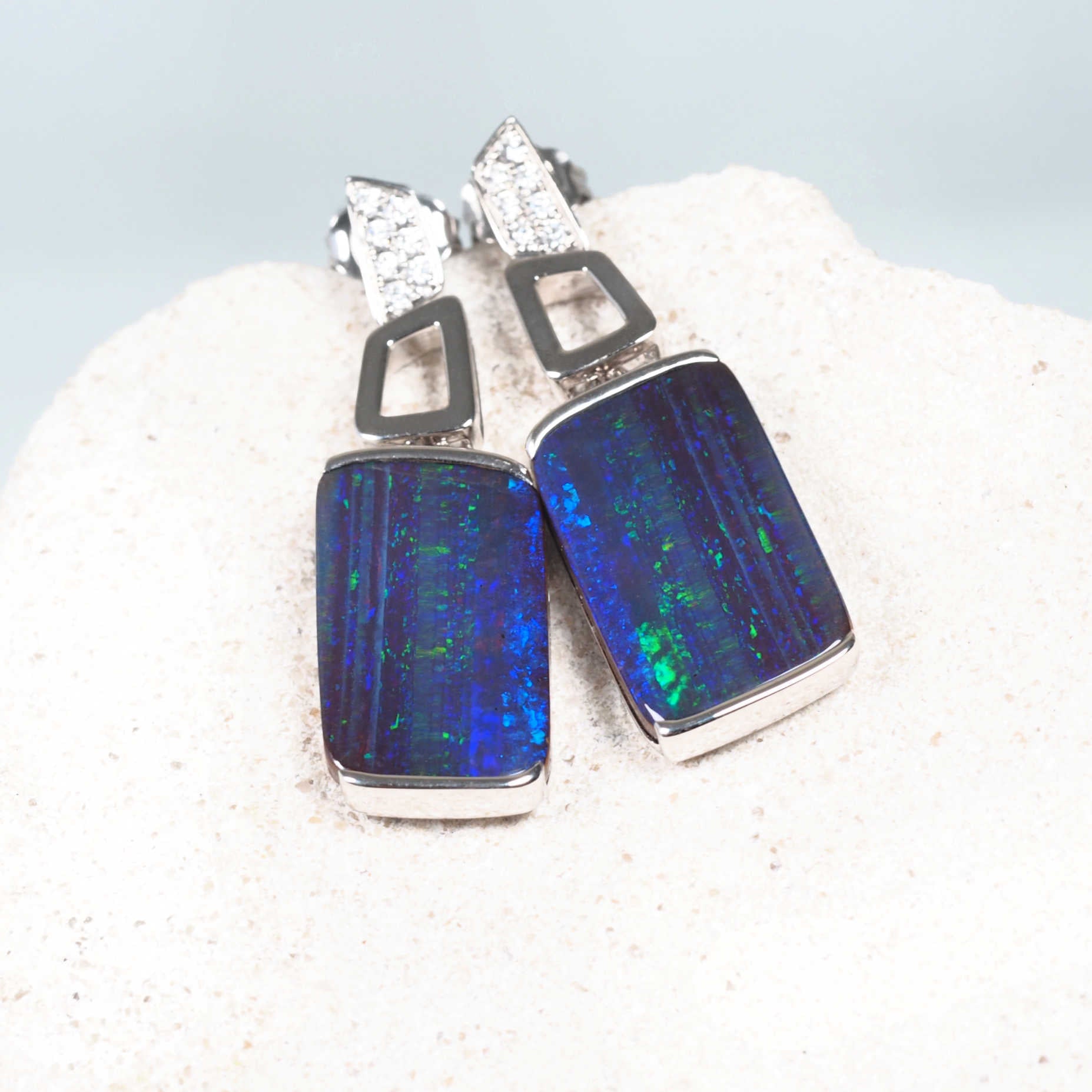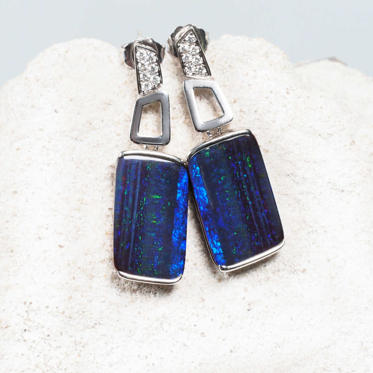 'Cleo' Boulder Opal Earrings 18ct White Gold