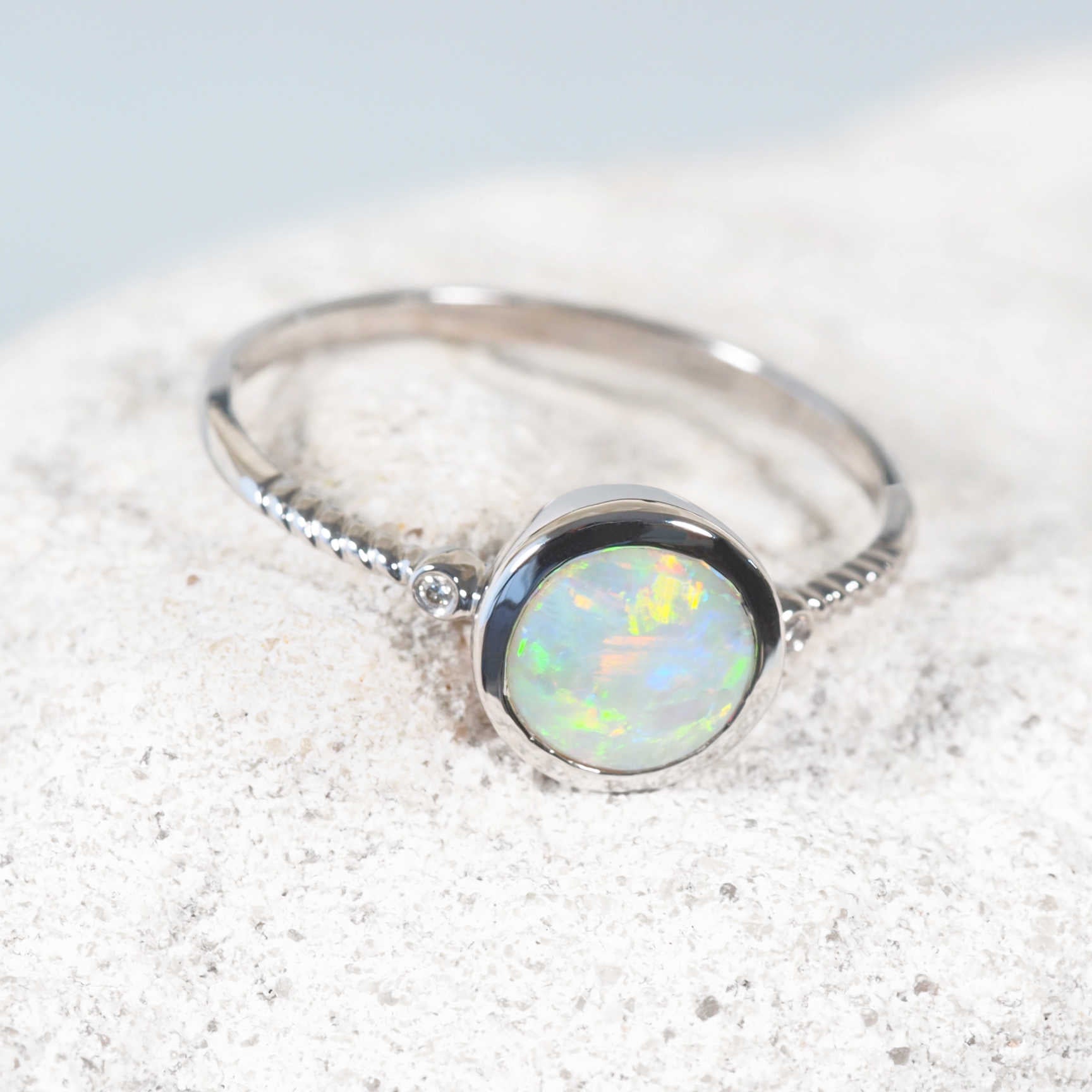'Thalia' Crystal Opal Ring 14ct White Gold